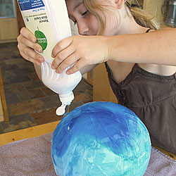 | Continue draping fibers over the ball until the entire ball is covered. |