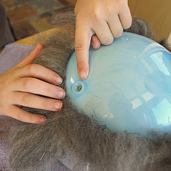 Separate thin strands of fiber (long enough to drape all the way over the ball). |